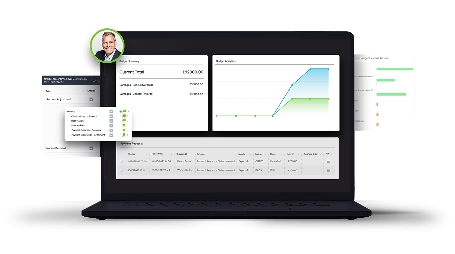 Used properly the combination of the Chart of Accounts and the Case Ledger means that your Case Handlers can manage all financial tasks related to the case without having to access external finance systems (ERPs & PMSs).