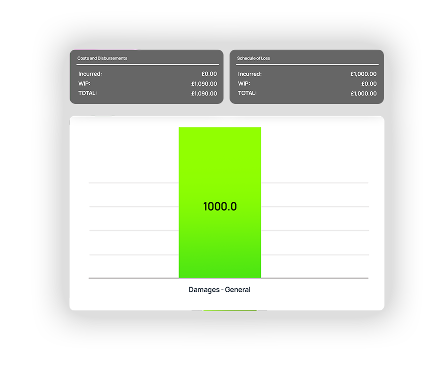 Typical uses include the tracking of internal costs, estimated settlements, reserving, quantum, and completion statements – however budgets can be used to track any number of important operational metrics depending on the businesses needs.